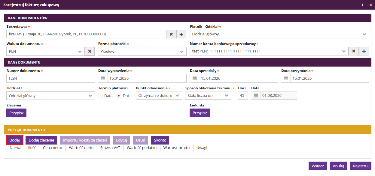 Rejestracja faktur zakupowych